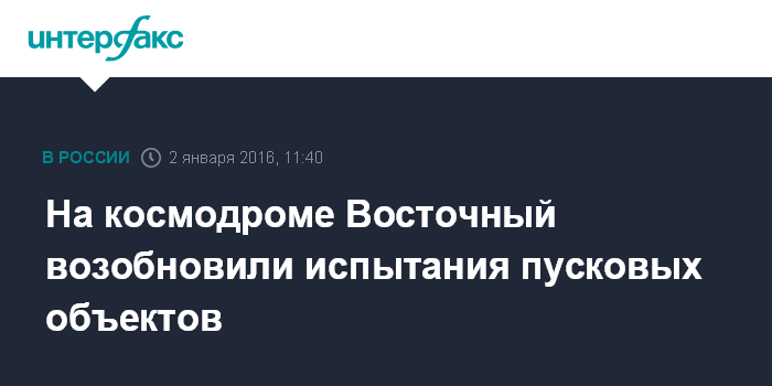 Москва. 2 января. INTERFAX.RU - Автономные испытания пусковых объектов возобновили специалисты космодрома Восточный, сообщил в субботу вице-премьер РФ Дмитрий Рогозин.