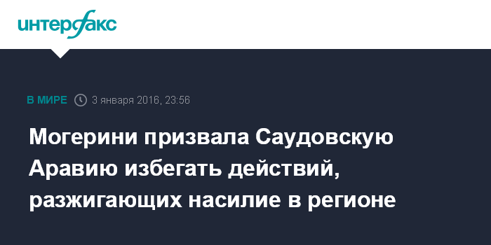 Могерини призвала Саудовскую Аравию избегать действий, разжигающих насилие в регионе