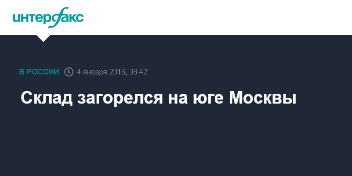 Москва. 4 января. INTERFAX.RU - Пожар произошел рано утром в понедельник на складе на юге Москвы, сообщает столичное ГУ МЧС России.