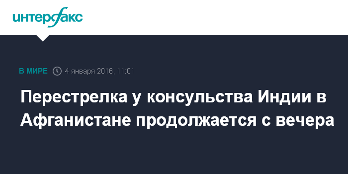 Москва. 4 января. INTERFAX.RU - Более 12 часов продолжается перестрелка у консульства Индии в афганском Мазари-Шарифе, район оцеплен силами безопасности.