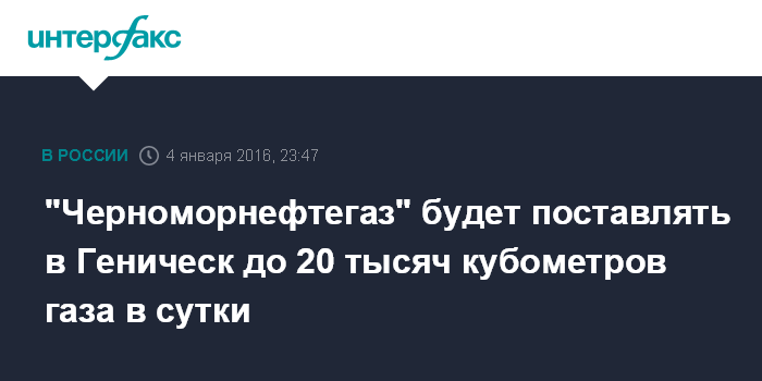 "Мы получили запрос на поставку газа в город Геническ, поскольку мощностей газотранспортной системы Украины недостаточно для отопления города и района Геническа. Мы переадресовали этот вопрос в вышестоящие органы власти РФ и получили указание осуществить поставку. Сегодня в 22:40 мск газ в город Геническ подан", - сообщил Шабанов.