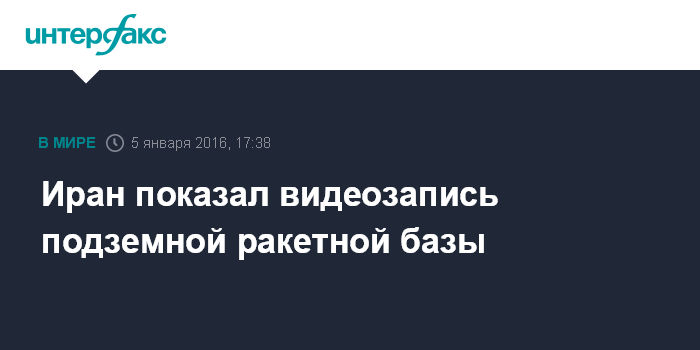 Москва. 5 января. INTERFAX.RU - Власти Ирана во вторник обнародовали видеозапись ракетной базы Корпуса Стражей Исламской революции (КСИР), построенной под землей в неназванном районе страны, сообщает во вторник иранское агентство "Тасним".