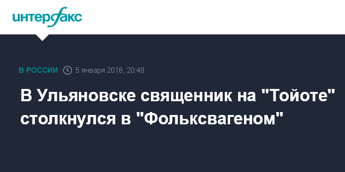 Москва. 5 января. INTERFAX.RU - В Ульяновске выясняют обстоятельства ДТП с тремя пострадавшими, которое спровоцировал настоятель одного из местных православных храмов, сообщил "Интерфаксу" источник в правоохранительных органах.
