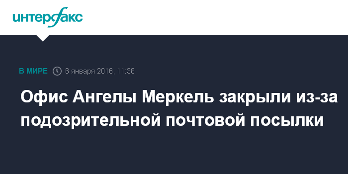 Москва. 6 января. INTERFAX.RU - Офис канцлера ФРГ Ангелы Меркель закрыт в среду после обнаружения подозрительного предмета, сообщили журналистам в федеральной полиции.