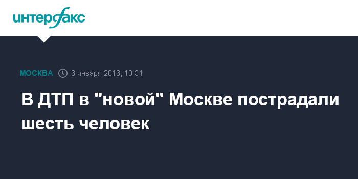 Москва. 6 января. INTERFAX.RU - Шесть человек, в том числе двое детей, пострадали в результате столкновения двух автомобилей в "новой" Москве, сообщили "Интерфаксу" в среду в пресс-службе столичной Госавтоинспекции.