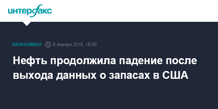 Москва. 6 января. INTERFAX.RU - Нефть Brent и WTI в среду подешевели до менее чем $35 за баррель на сигналах о слабости экономики КНР, падение продолжилось и после публикации данных о запасах энергоносителей в США, сообщает агентство Bloomberg.