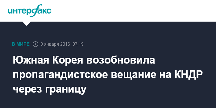 Москва. 8 января. INTERFAX.RU - Южная Корея в полдень по местному времени (06:00 по Москве) возобновила пропагандистское вещание на КНДР через установленные на границе между двумя странами громкоговорители, сообщает в пятницу южнокорейское минобороны.