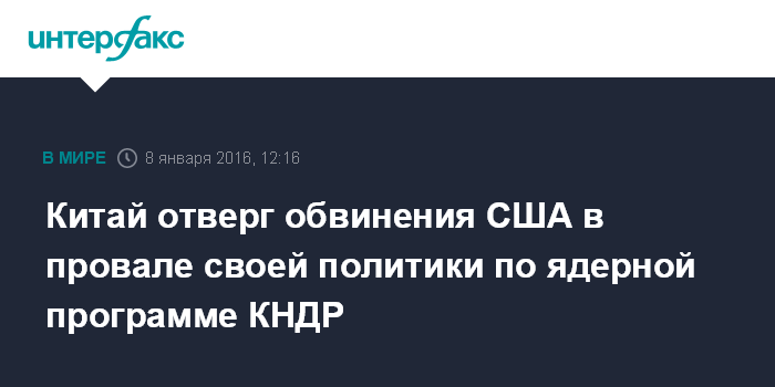 Китай отверг обвинения США в провале своей политики по ядерной программе КНДР