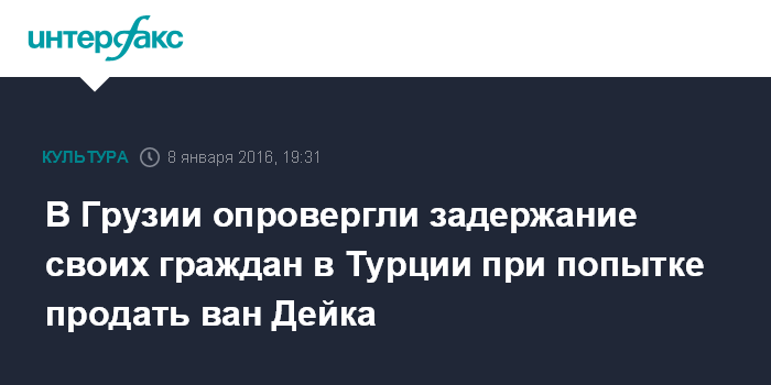 Москва. 8 января. INTERFAX.RU - В министерстве иностранных дел Грузии опровергли распространенную в пятницу в СМИ информацию о том, что по подозрению в попытке нелегальной продажи картины Антониса ван Дейка в Стамбуле задержаны двое грузинских граждан.