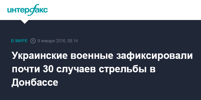 Москва. 9 января. INTERFAX.RU - За прошедшие сутки ополченцы 29 раз обстреляли позиции украинских военных в Донбассе, сообщил пресс-центр силовой операции на своей странице в фейсбуке.