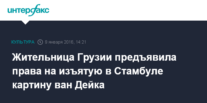 Москва. 9 января. INTERFAX.RU - Жительница Грузии Эка Абашидзе утверждает, что считавшаяся пропавшей картина Антониса ван Дейка, обнаруженная в Стамбуле, принадлежит ее семье и 15 лет провисела на стене в их доме.