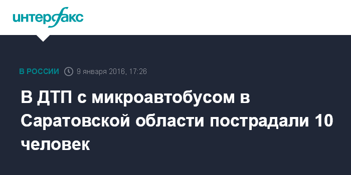 Москва. 9 января. INTERFAX.RU - В ДТП с участием рейсового микроавтобуса в Энгельском районе Саратовской области пострадали десять человек, один из них - 15-летний подросток, сообщили "Интерфаксу" в пресс-службе министерства здравоохранения региона.