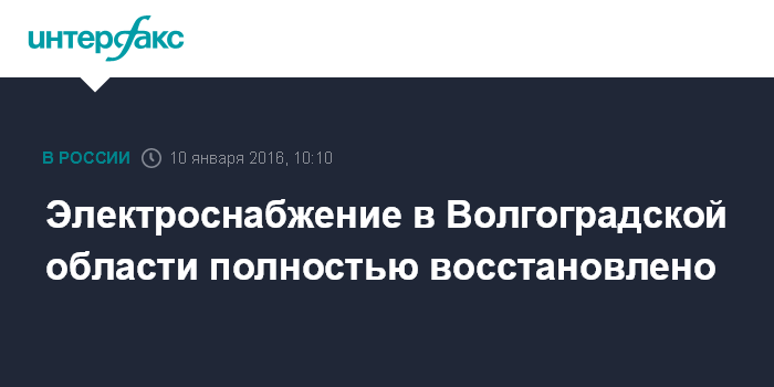 Москва. 10 января. INTERFAX.RU – Оперативно-ремонтные бригады полностью восстановили электроснабжение на северо-востоке Волгоградской области, нарушенное в результате налипания мокрого снега на провода, сообщает пресс-служба регионального филиала ПАО "МРСК Юга".