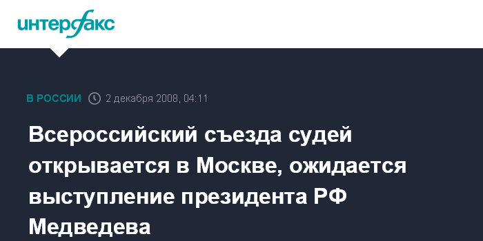 Всероссийский съезда судей открывается в Москве, ожидается выступление президента РФ Медведева