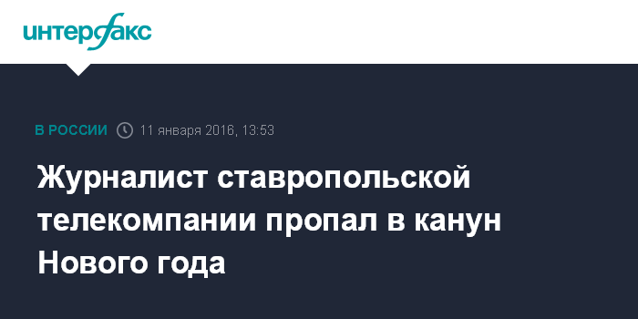 "Накануне от коллег пропавшего журналиста поступило заявление о его безвестном исчезновении. Последний раз его видели 30 декабря, когда он уходил с работы из телестудии, расположенной на улице Дзержинского в Ставрополе", - сказал представитель полиции.