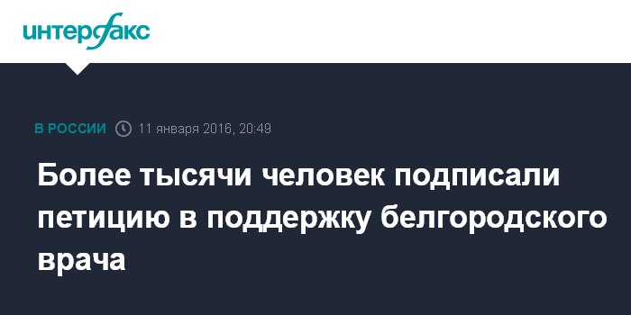 Более тысячи человек подписали петицию в поддержку белгородского врача