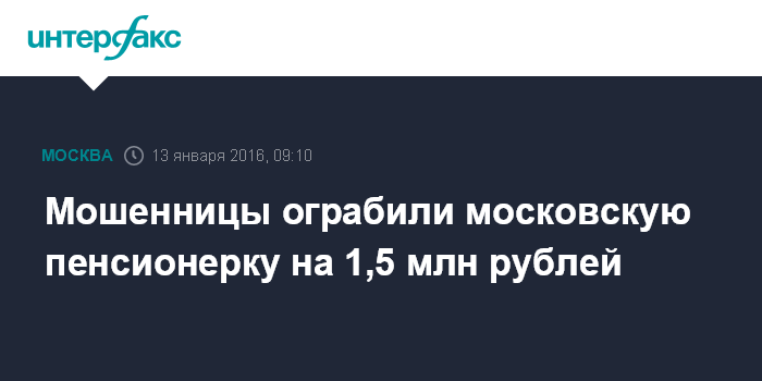 Мошенницы ограбили московскую пенсионерку на 1,5 млн рублей