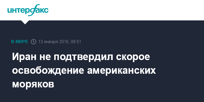 Москва. 13 января. INTERFAX.RU - Представитель Корпуса стражей иранской революции не подтвердил распространенные ранее сообщения о немедленном освобождении экипажей катеров ВМС США, задержанных в иранских территориальных водах.