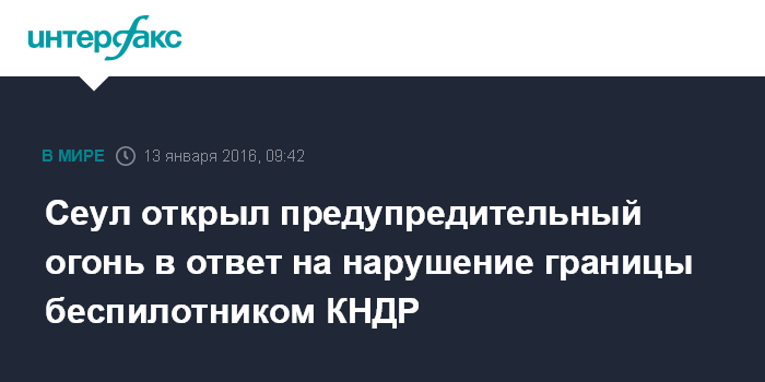 Москва. 13 января. INTERFAX.RU - Южная Корея открыла предупредительный огонь на границе с КНДР после того, как границу попытался пересечь северокорейский беспилотник, сообщает в среду агентство Associated Press со ссылкой на южнокорейские СМИ.