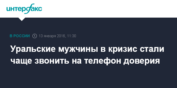 Москва. 13 января. INTERFAX.RU - Количество обращений мужчин на телефон доверия выросло в Свердловской области на фоне непростой экономической ситуации, сообщил главный психотерапевт региона Михаил Перцель.