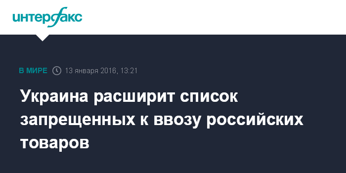 Москва. 13 января. INTERFAX.RU - Премьер-министр Украины Арсений Яценюк дал поручение министерству экономического развития и торговли расширить список товаров из РФ, ввоз которых будет запрещен.
