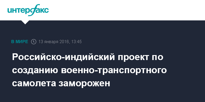 Москва. 13 января. INTERFAX.RU - Реализация совместного российско-индийского проекта по созданию военно-транспортного самолета приостановлена из-за позиции индийской стороны, заявил журналистам в среду генеральный директор ОАО "Авиационный комплекс имени Ильюшина" Сергей Вельможкин.