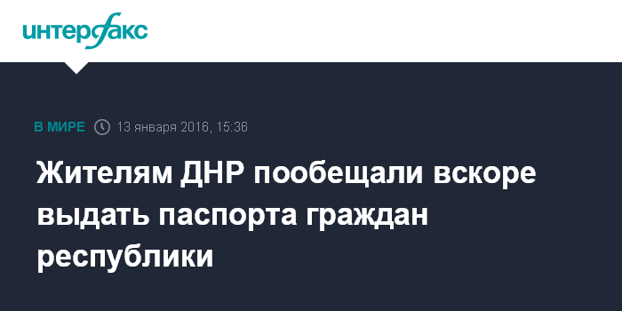 Москва. 13 января. INTERFAX.RU - Власти самопровозглашенной Донецкой народной республики (ДНР) планирует вскоре начать выдачу паспортов республики.