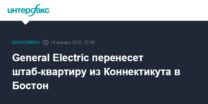 Москва. 14 января. INTERFAX.RU – General Electric приняла решение о переносе штаб-квартиры, месторасположение которой не менялось с 1974 года, пишет The Wall Street Journal. Компания переедет из Фэрфилда в штате Коннектикут в Бостон, штат Массачусетс.