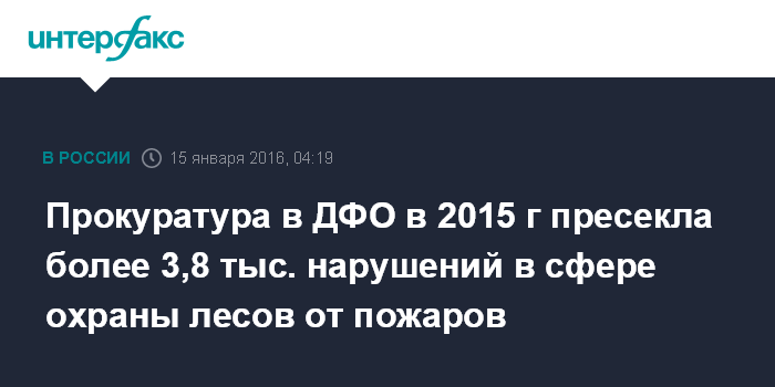 Прокуратура в ДФО в 2015 г пресекла более 3,8 тыс. нарушений в сфере охраны лесов от пожаров