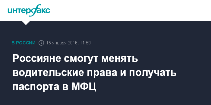 Россияне смогут менять водительские права и получать паспорта в МФЦ