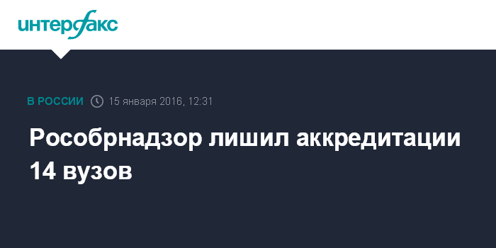 Москва. 15 января. INTERFAX.RU - Рособрнадзор приостановил государственную аккредитацию 14 вузов, еще в семи запрещен прием абитуриентов, сообщили "Интерфаксу" в пресс-службе ведомства.