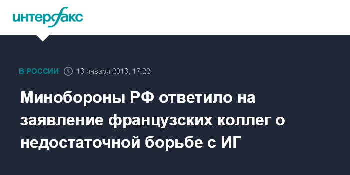 Москва. 16 января. INTERFAX.RU - Официальный представитель Минобороны России Игорь Конашенков выразил недоумение по поводу высказываний министра обороны Франции Жана-Ива Ле Дриана о недостаточности действий российской авиации против исламистов в Сирии.