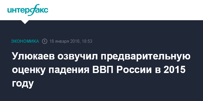 Москва. 16 января. INTERFAX.RU - ВВП РФ в 2015 году, по предварительной оценке, снизился на 3,9% по сравнению с 2014 годом, сказал министр экономического развития Алексей Улюкаев журналистам в субботу в Пекине.