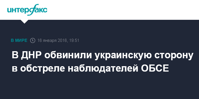 Москва. 16 января. INTERFAX.RU - В самопровозглашенной Донецкой народной республике (ДНР) обвинили украинских военных в обстреле миссии ОБСЕ.