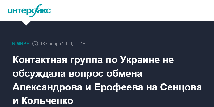 Контактная группа по Украине не обсуждала вопрос обмена Александрова и Ерофеева на Сенцова и Кольченко