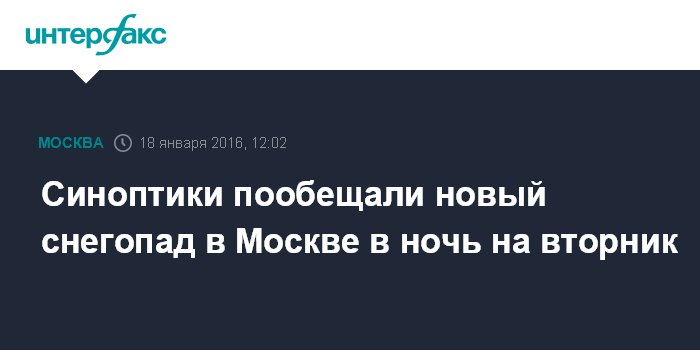 Как сообщили "Интерфаксу" в Гидрометеобюро Москвы и Московской области, в ночь на вторник в Москве пойдет сильный снег, ожидаются метель и усиление ветра с порывами до 15 м/с.