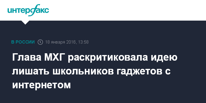 Москва. 18 января. INTERFAX.RU - Руководитель Московской Хельсинкской группы (МХГ) правозащитница Людмила Алексеева подвергла критике инициативу детского омбудсмена Павла Астахова запретить школьникам пользоваться гаджетами с возможностью выхода в интернет.