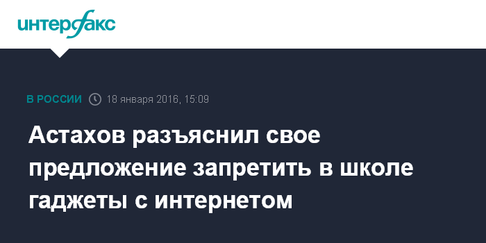 Москва. 18 января. INTERFAX.RU - Уполномоченный при президенте РФ по правам ребенка Павел Астахов пояснил свою инициативу, касающуюся использования школьниками гаджетов с выходом в интернет.