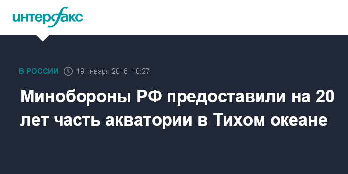 Минобороны РФ предоставили на 20 лет часть акватории в Тихом океане
