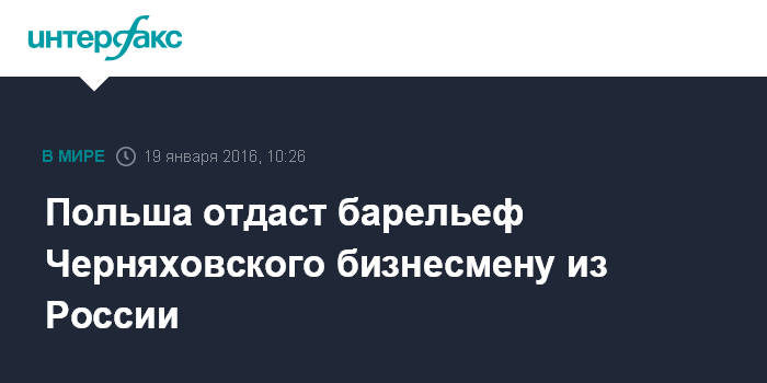 Польша отдаст барельеф Черняховского бизнесмену из России