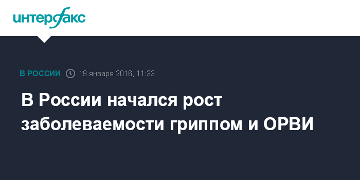 Москва. 19 января. INTERFAX.RU - В России начался подъем заболеваемости гриппом и ОРВИ, сообщила руководитель Роспотребнадзора, главный санитарный врач РФ Анна Попова.