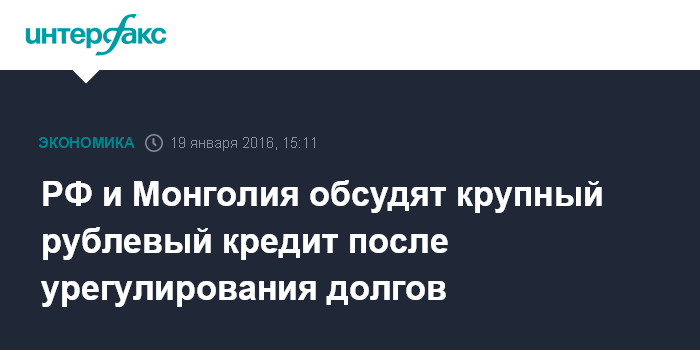 РФ и Монголия обсудят крупный рублевый кредит после урегулирования долгов