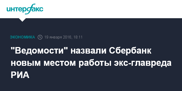 "Ведомости" назвали Сбербанк новым местом работы экс-главреда РИА