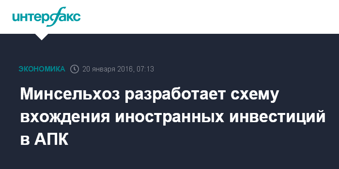 Минсельхоз разработает схему вхождения иностранных инвестиций в АПК