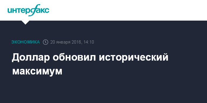 Москва. 20 января. INTERFAX.RU – – Доллар обновил исторический максимум на Московской бирже, установленный 16 декабря 2014 года, когда доллар поднимался до 80,1 рубля. В ходе торгов среды около 14:05 мск курс доллара взлетал до 80,179 рубля.