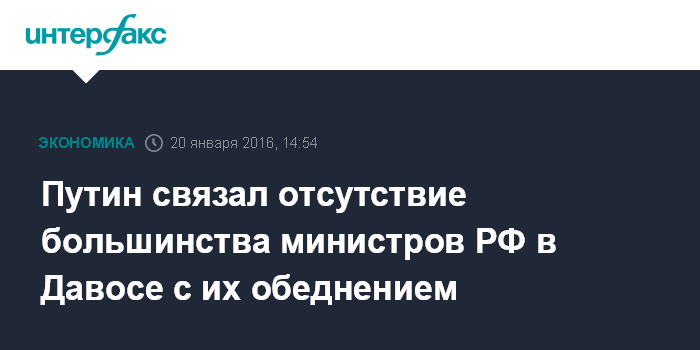 Путин связал отсутствие большинства министров РФ в Давосе с их обеднением