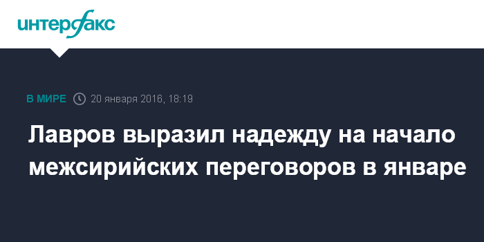 Москва. 20 января. INTERFAX.RU - Министр иностранных дел России Сергей Лавров рассчитывает, что процесс политического урегулирования в Сирии начнется уже в течение января, в этом же месяце должны состояться межсирийские переговоры.