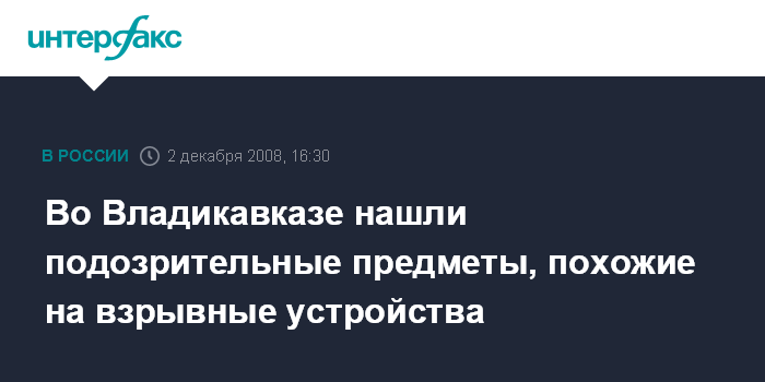 Москва. 2 декабря. INTERFAX.RU - Во Владикавказе возле префектуры Иристонского муниципального округа сотрудники правоохранительных органов проверяют подозрительный предмет, похожий на взрывное устройство.