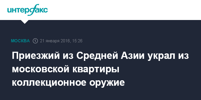 Москва. 21 января. INTERFAX.RU - На юге Москвы задержан похитивший коллекционное оружие приезжий из Средней Азии, сообщает сайт m24ru.