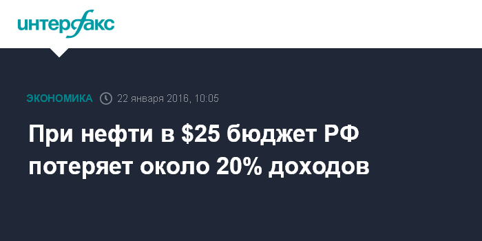 При нефти в $25 бюджет РФ потеряет около 20% доходов